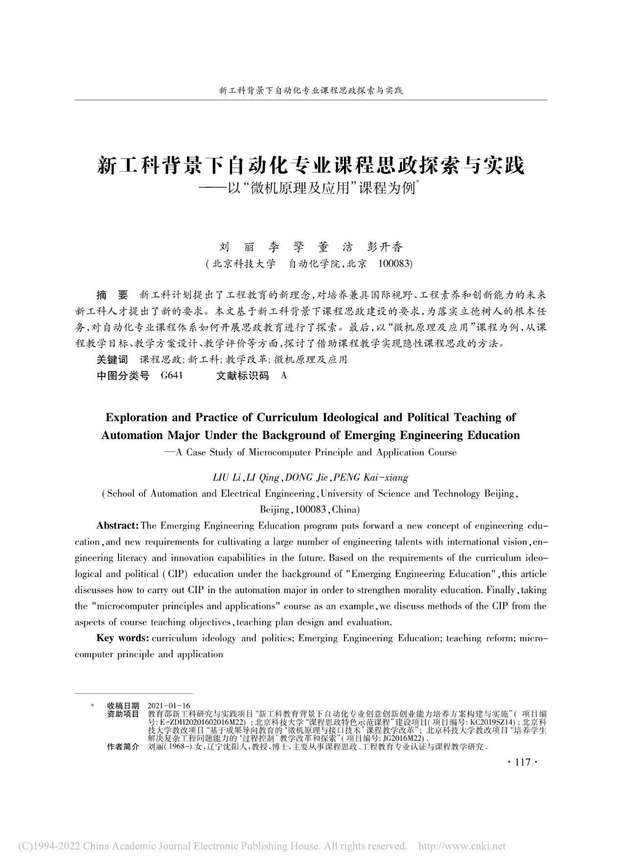 新工科背景下自动化专业课程思政探索与实践 ——以“微机原理及应用”课程为例 |