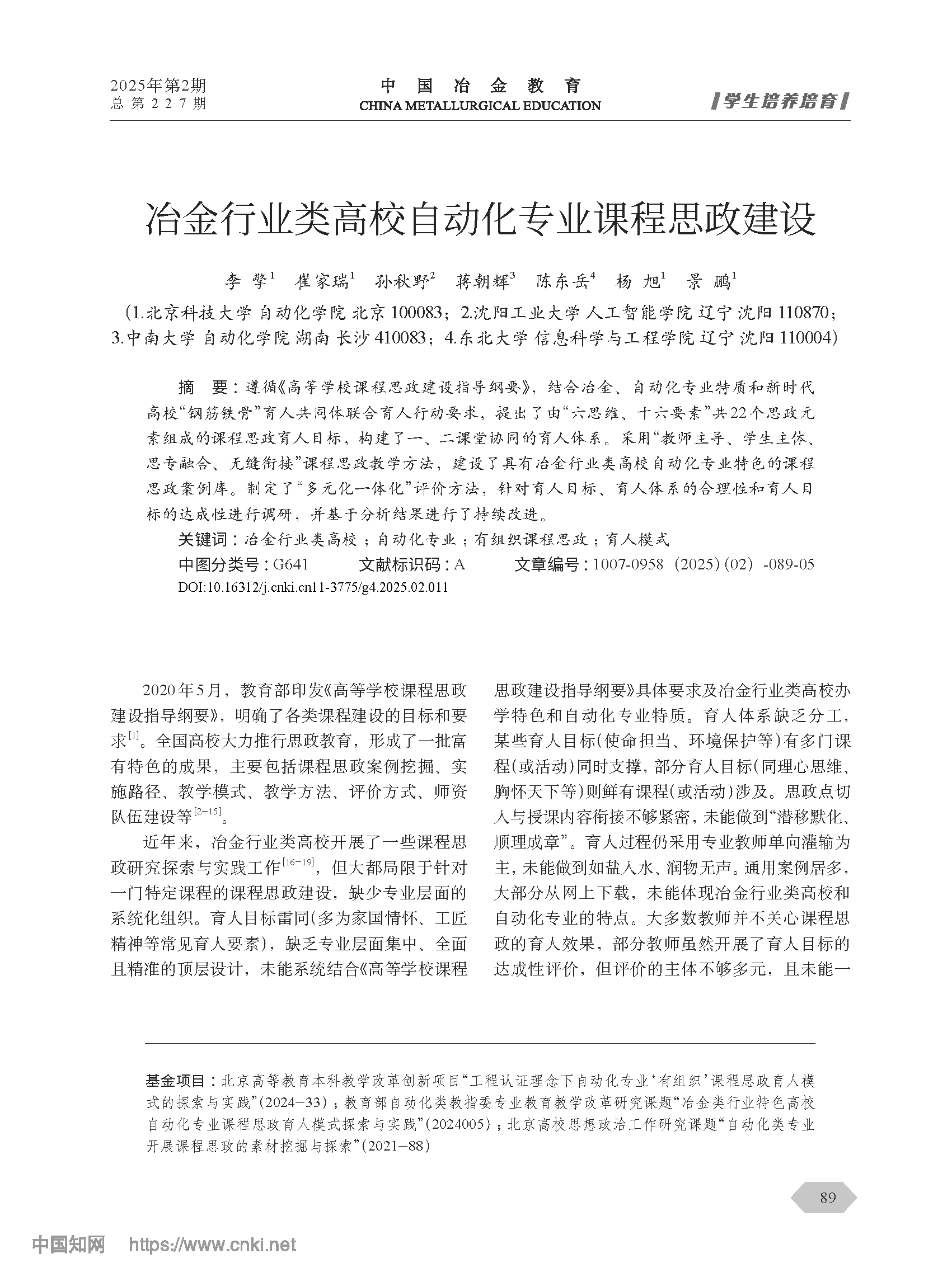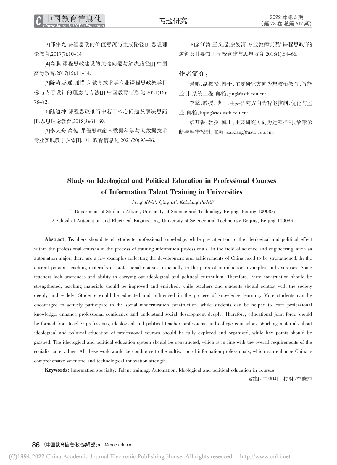 自动化专业实践类课程思政育人教学模式的构建与实施 |