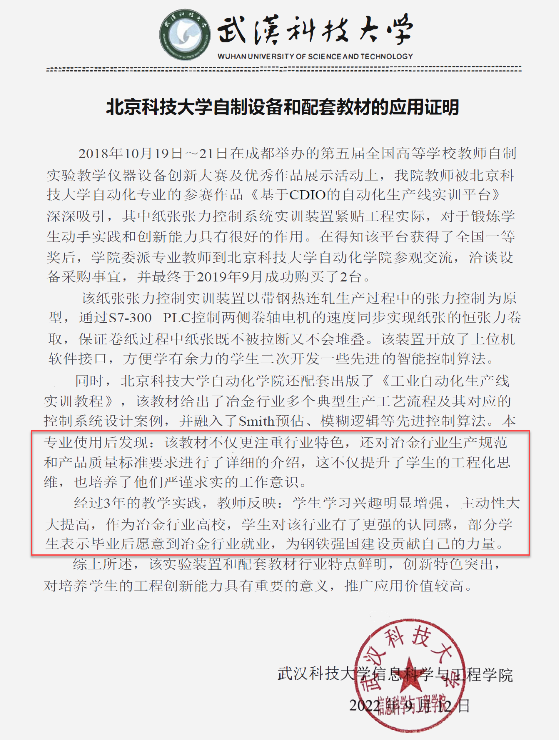 [3] 英国365集团公司自制设备和配套教材的应用证明——武汉科技大学信息科学与工程学院