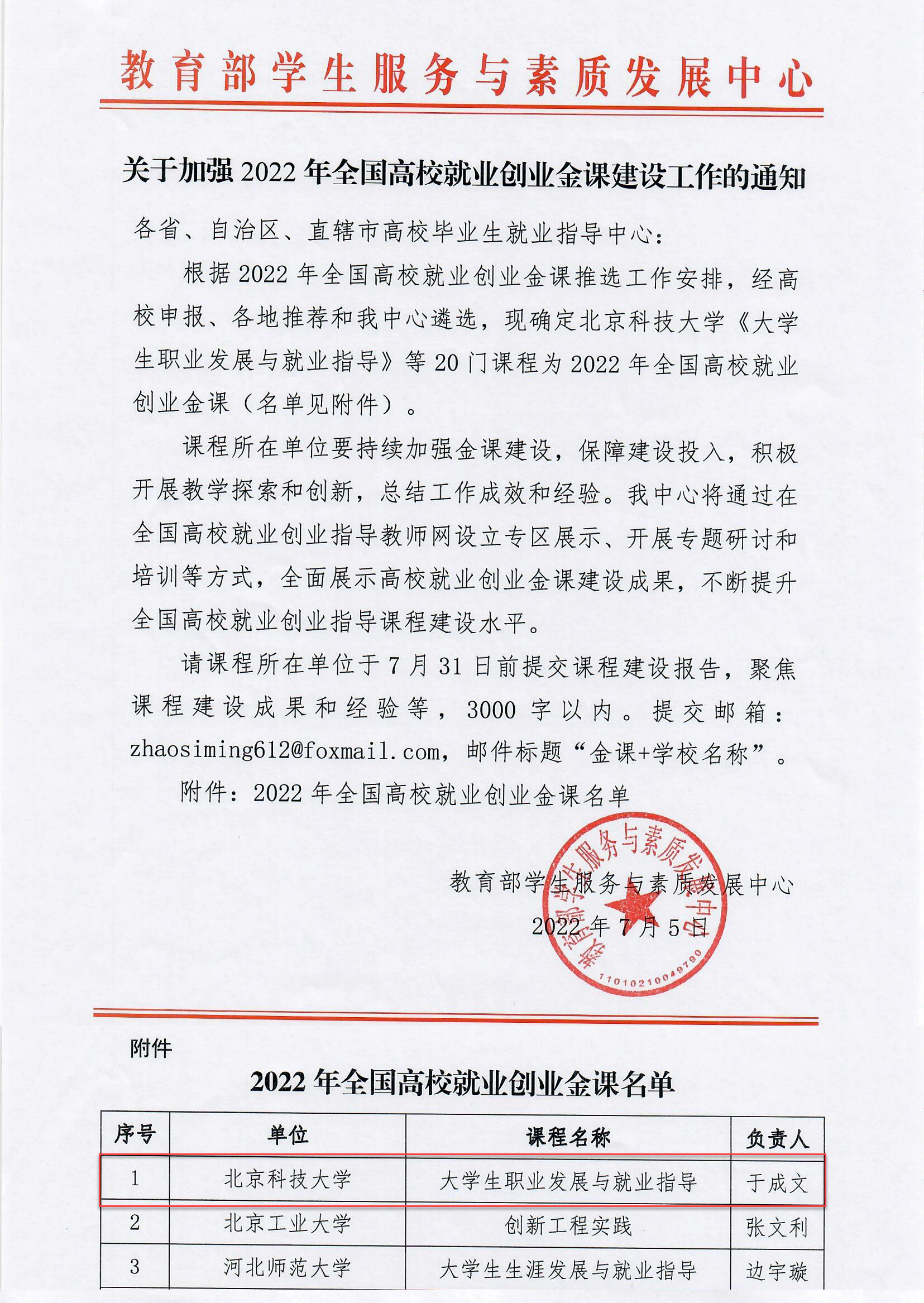 [37] 【北京高校就业创业金课】2021年4月,“大学生职业发展与就业指导”获北京高校就业创业金课