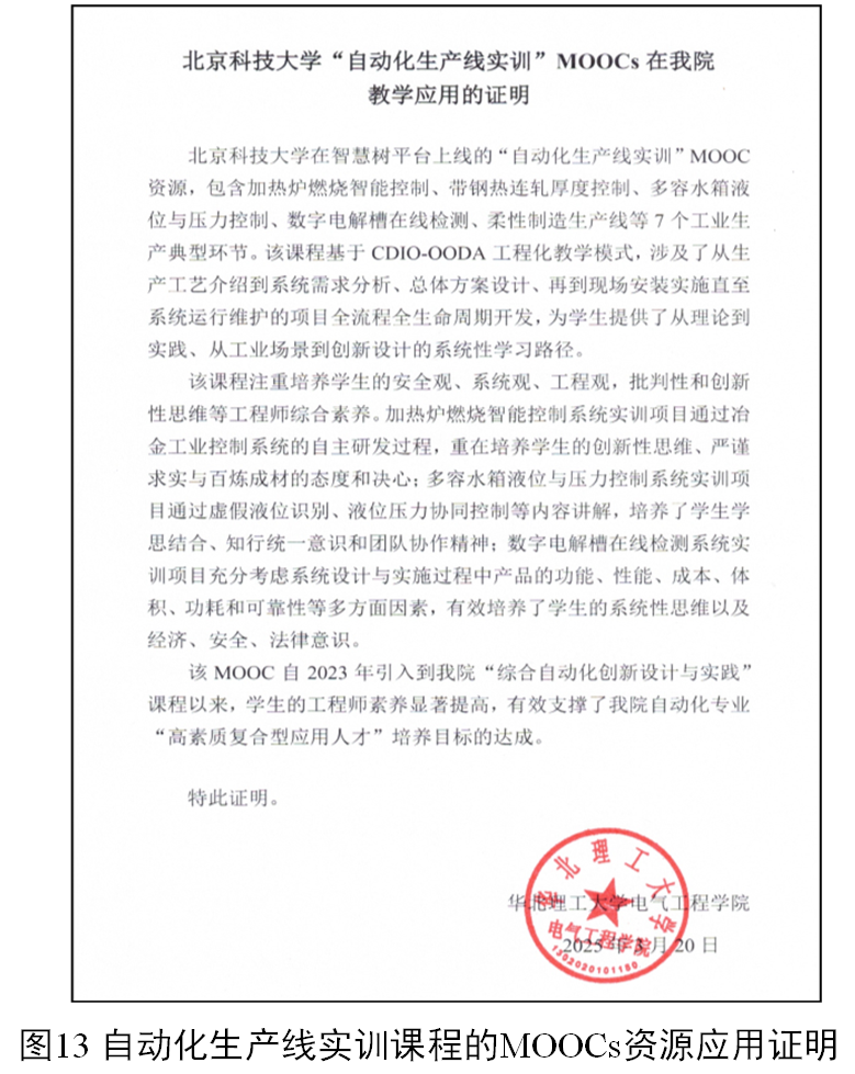 5)录制了6门融入课程思政元素的MOOCs资源,累计2500余分钟。其中,融入安全观、系统观、工程观,批判性和创新性思维等工程师综合素养的“自动化生产线实训”MOOCs已推广到华北理工大学电气工程学院。