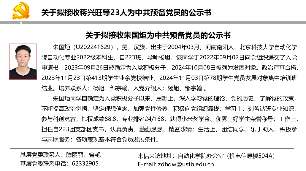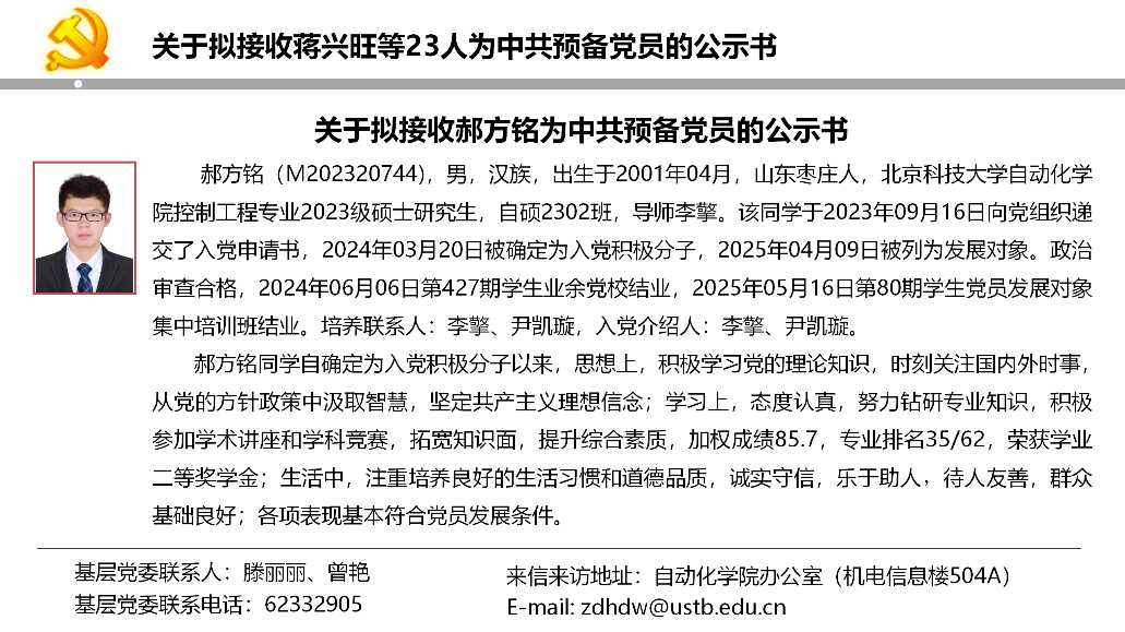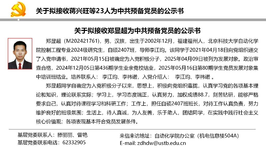 关于拟接收蒋兴旺等23人为中共预备党员的公示书