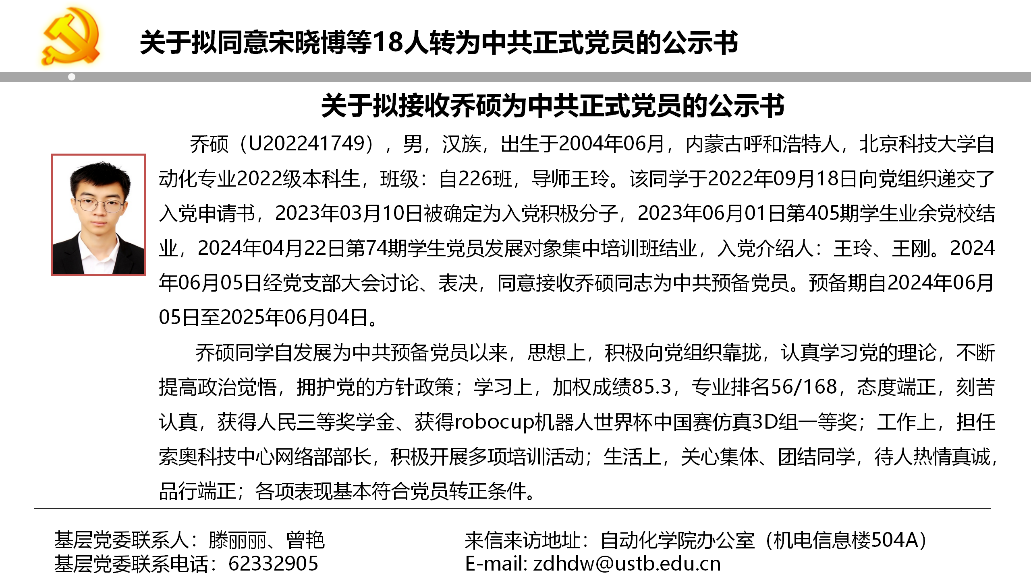 关于拟同意宋晓博等18人转为中共正式党员的公示书