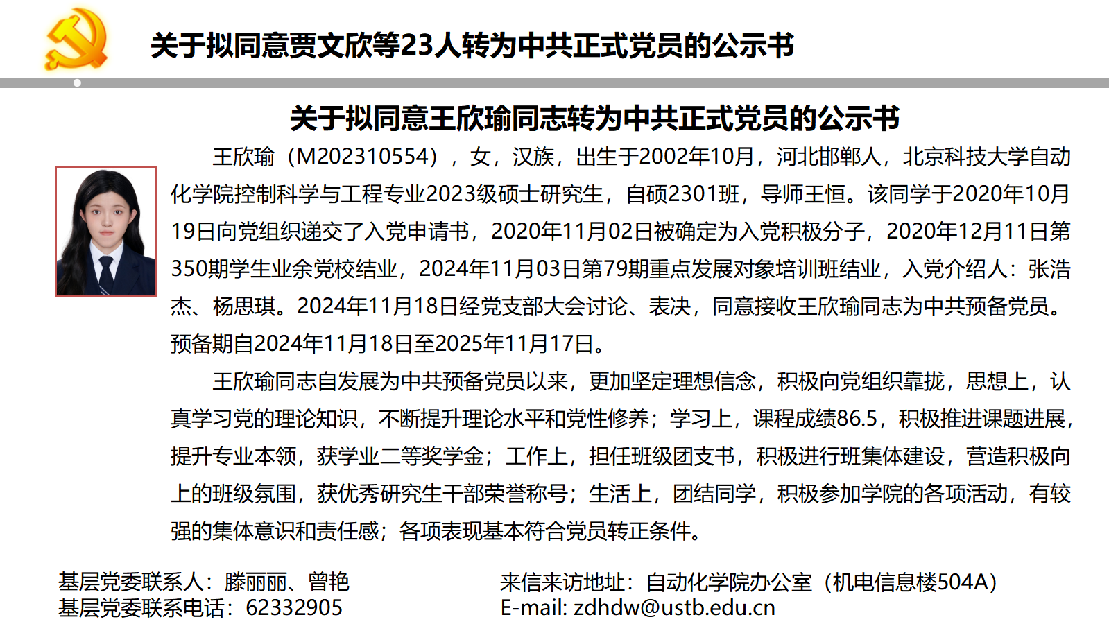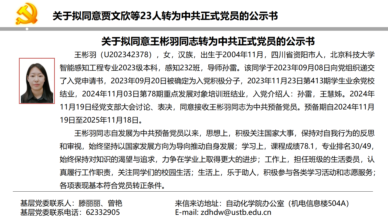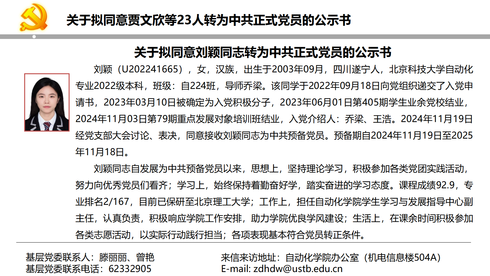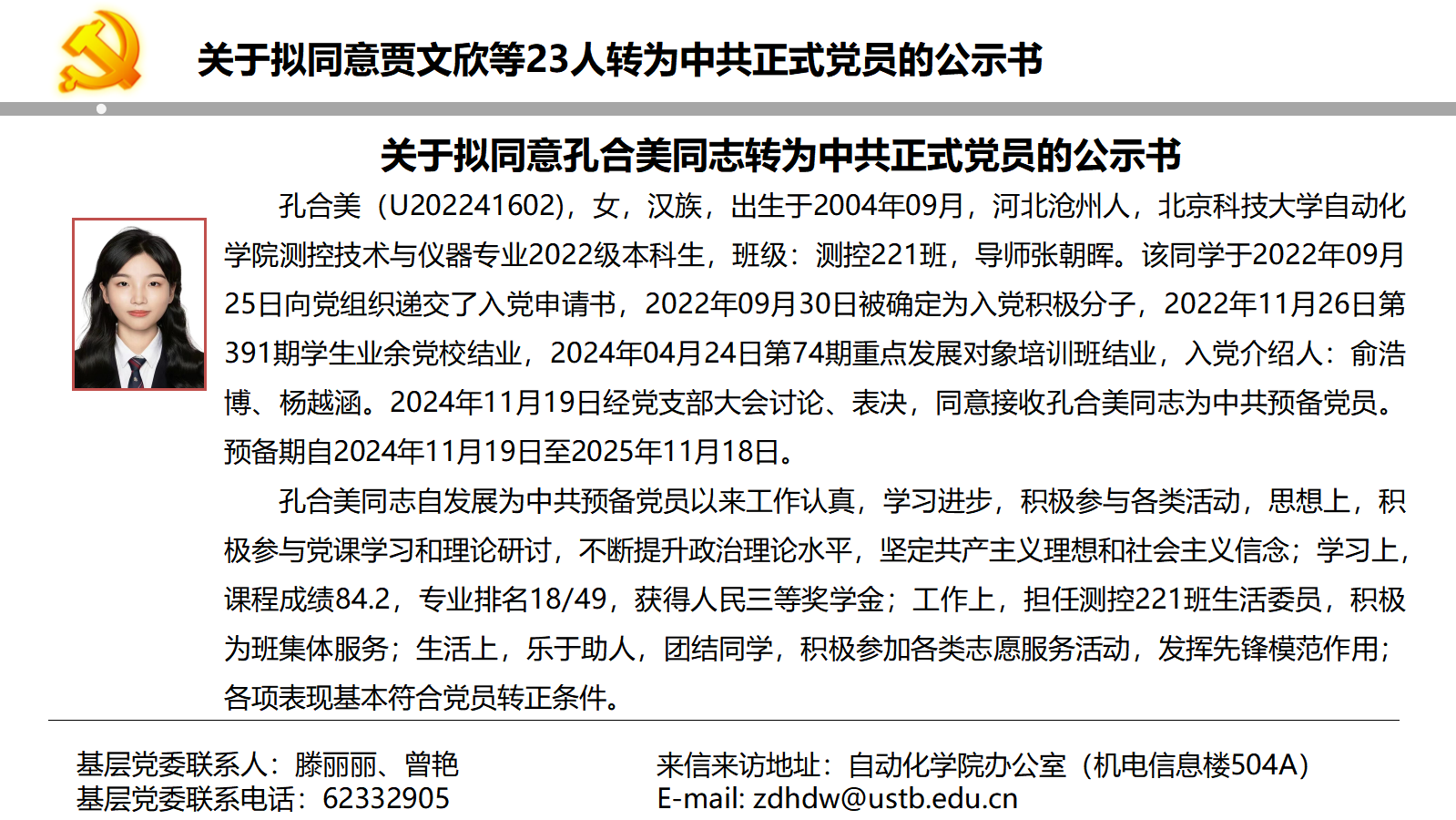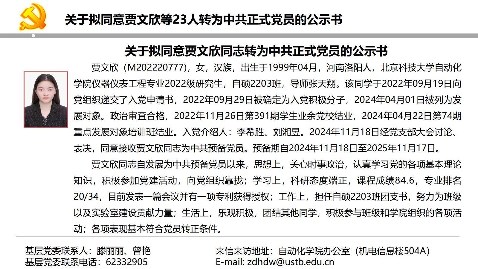 关于拟同意贾文欣等23人转为中共正式党员的公示书