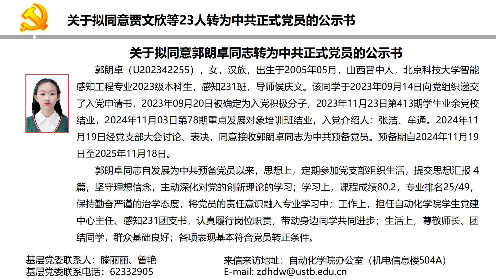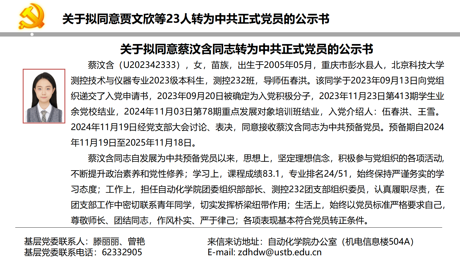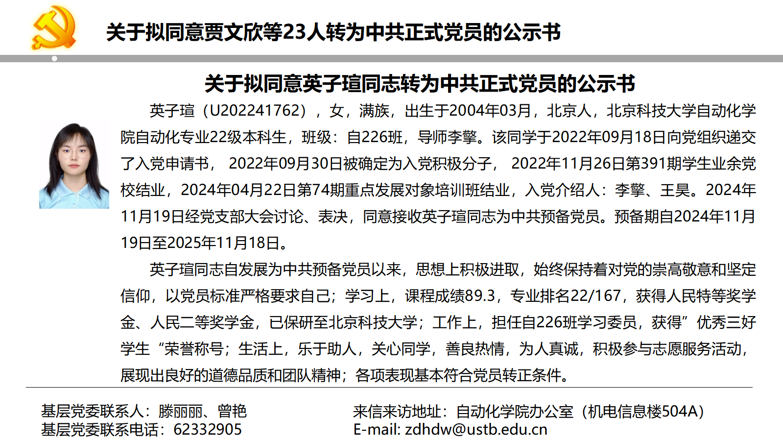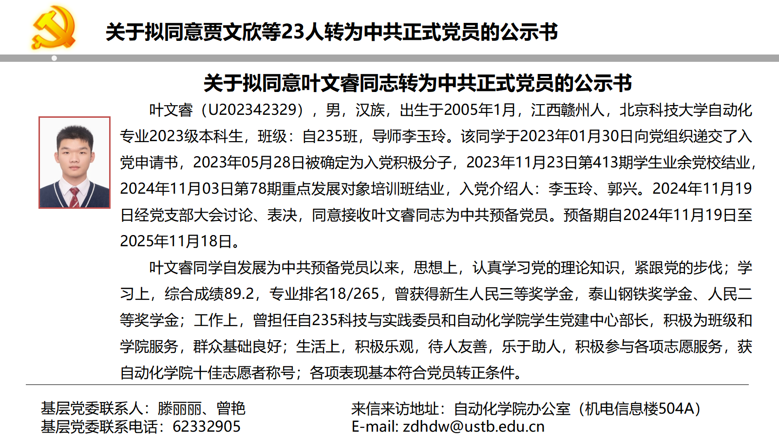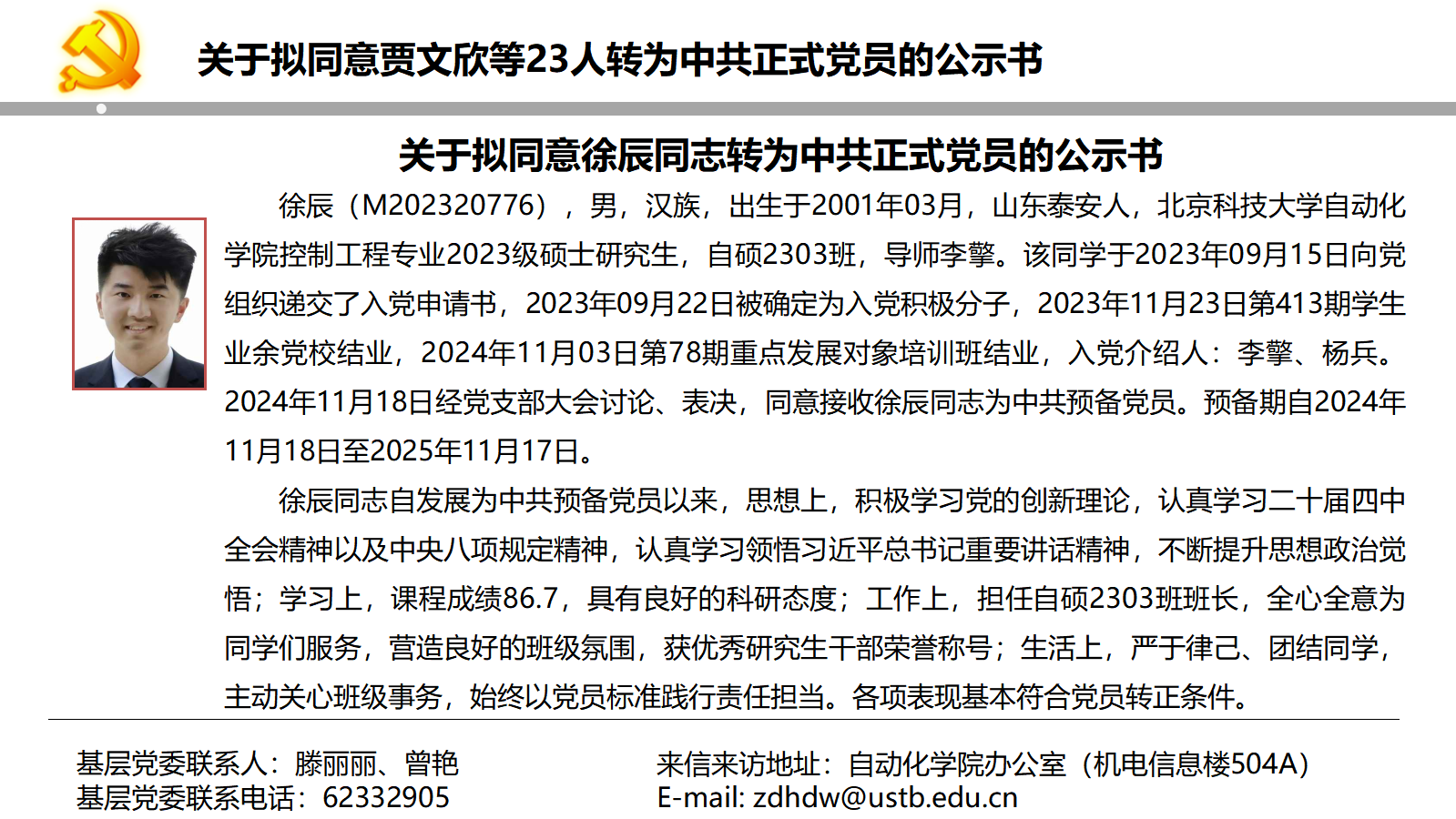关于拟同意贾文欣等23人转为中共正式党员的公示书