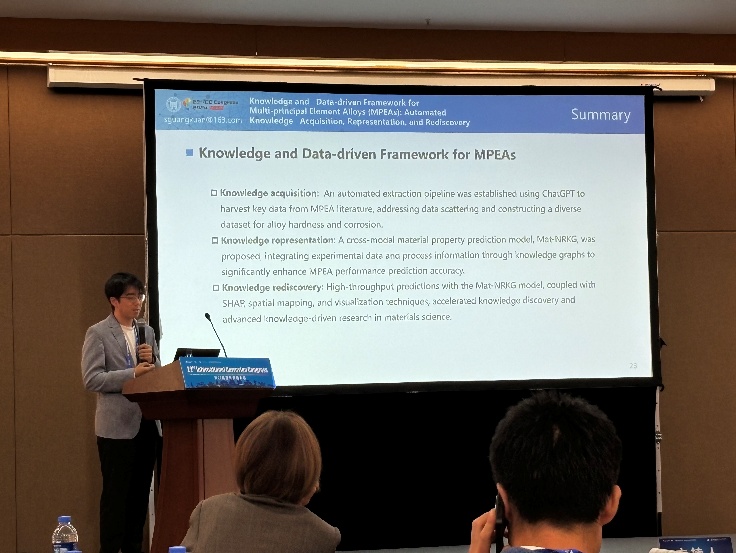 博士阶段,宋广轩专注于研究面向材料服役领域的知识图谱及大语言模型。针对材料服役数据建模中的非线性、小样本等难题,他提出融合知识图谱与结构化数据的金属性能预测方法及含噪真实世界科学数据建模方法,相关成果在2024年中国科学数据大会和2024年世界腐蚀大会上分别作中、英文报告。研究生期间以一作身份发表SCI/EI论文2篇,4篇SCI论文在审,授权/开发明专利4篇,授权软件著作权6项。